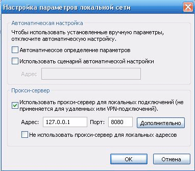 Использовать этот прокси-сервер для локальных подключений.