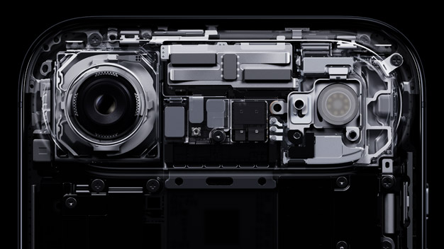 Добиться такой толщины позволила полная переработка внутренней и внешней архитектуры устройства. Для рамки использован прочный титан, а задняя панель изготовлена из Ceramic Shield — прочного стекла, устойчивого к царапинам. К слову, лицевая часть защищена таким же материалом, но нового поколения. Ceramic Shield 2 получил еще большую выносливость и способен выдержать в три раза больше механических воздействий. Усиленная структура покрытия делает смартфон прочнее, чем были его предшественники.